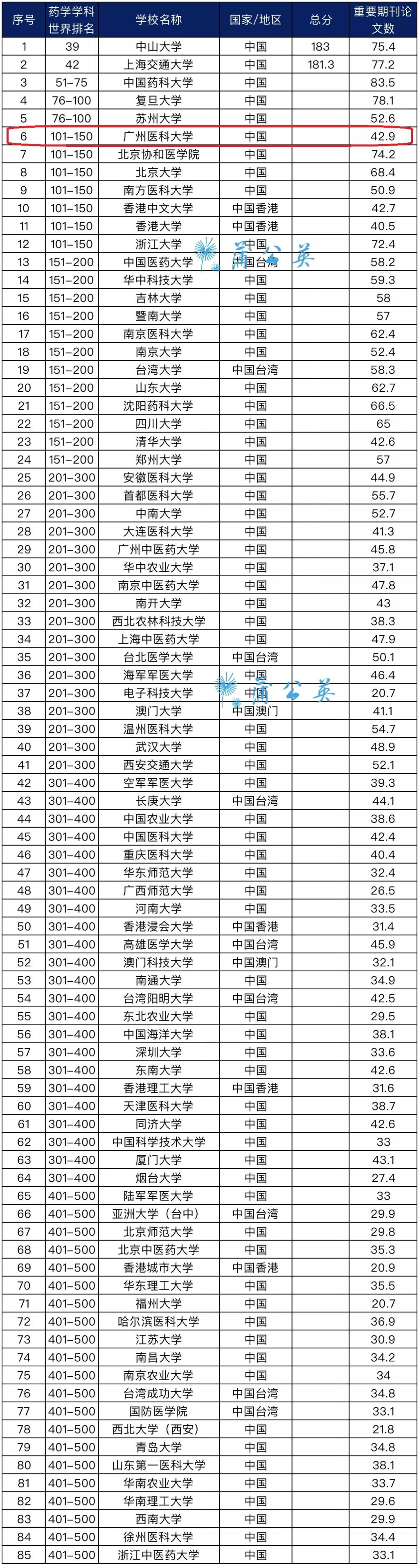 我校药学学科首次跻身软科世界一流学科全球前150名内 跃居全国第6名